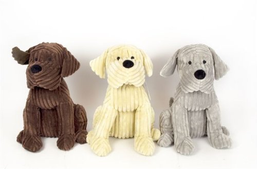 Beige Soft Cord Ribbed Cute Dog Door Stop Doggy Fabric Doorstop 28cm