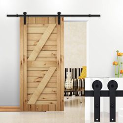 Hahaemall Rustic Vintage 5-13FT Sliding Bypass Barn Door Hardware Black Steel Track Roller Hanger Rolling Flat Rail Set (6.6FT Bypass Kit): Home Improvement