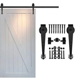 WINSOON 5-16FT Single Wood Sliding Barn Door Hardware Basic Black Big Spoke Wheel Roller Kit Garage Closet Carbon Steel Flat Track System (10FT): Home Improvement