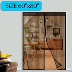 Magnetic Screen Door Fit Door 60"(w) X 80"(h), Full Frame Velcro, Hands Free Bug Mesh curtain, Automatically Tight Closure Black - -