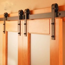 Hahaemall Rustic Vintage 5-13FT Sliding Bypass Barn Door Hardware Black Steel Track Roller Hanger Rolling Flat Rail Set (6.6FT Bypass Kit): Home Improvement