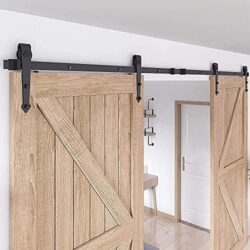 HomeDeco Hardware New Style 5-16 FT Bypass Sliding Barn Door Hardware Black Steel Track For Double Wooden Doors Indoor Closet Kitchen Kit (7.5 FT New style bypass kit): Home