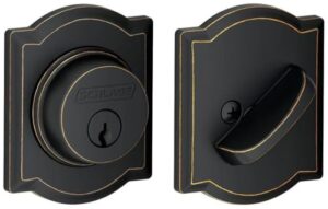 Single Cylinder Deadbolt with Camelot Trim, Aged Bronze (B60 N CAM 716) - Door Dead Bolts -