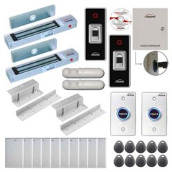 Visionis FPC-7822 Two Doors Access Control Electromagnetic Lock for Inswinging Door 300lbs TCP/IP Wiegand Controller Box, Indoor + Outdoor Fingerprint/Card Reader, Software, 10000 User, with PIR Kit