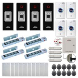 Visionis FPC-7843 Four Doors Access Control Electromagnetic Lock for Outswinging Door 300lbs TCP/IP Wiegand Controller Box, Indoor + Outdoor Fingerprint/Card Reader, Software, 10000 Users, PIR Kit