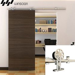 WINSOON Ship from USA 5FT American Heavy Indoor Stainless Steel Sliding Wood Door Hardware Flat Track Rail Hanging Single Closet Cabinet Set: Home Improvement