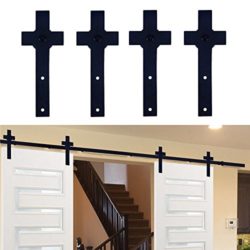 WINSOON 5-18FT Sliding Barn Wood Door Hardware Cabinet Closet Kit Antique Style for Double Doors Black Surface (5FT /60" 2 Doors Track Kit): Home Improvement