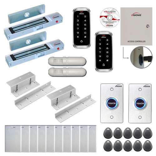 Visionis FPC-8134 Two Doors Access Control Electromagnetic Lock Inswinging Door 300lbs TCP/IP Wiegand Controller Box, Outdoor Weatherproof Keypad/Reader, Software Included 10000 Users, with PIR Kit